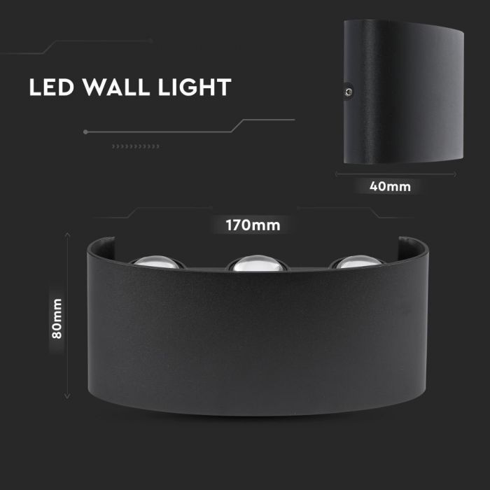6W(540Lm) LED Facade light, V-TAC, IP54, black, warm white light 3000K