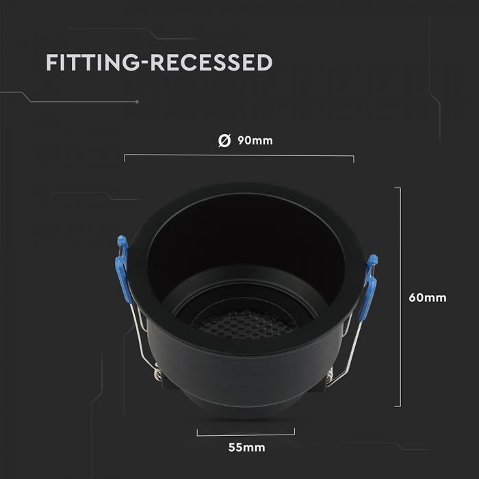 GU10 Aluminium round luminaire with deep anti-glare grille, black housing, V-TAC, IP20