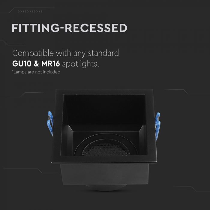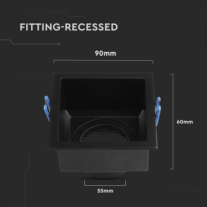 GU10 aluminium square luminaire with deep anti-glare grille, black housing, V-TAC, IP20