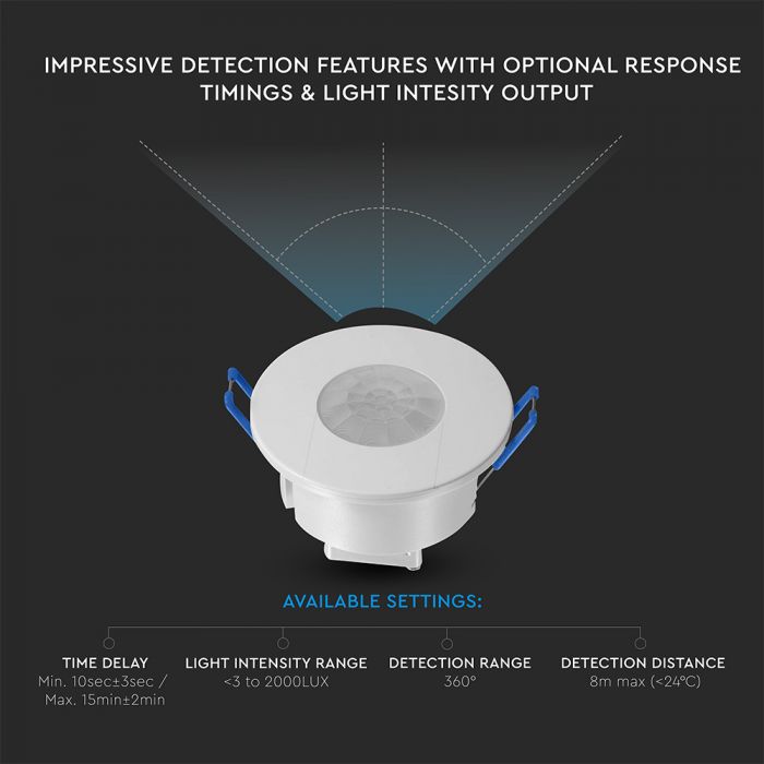 Infrasarkanais PIR kustības sensors ar integrētu mikroshēm, IP20, V-TAC