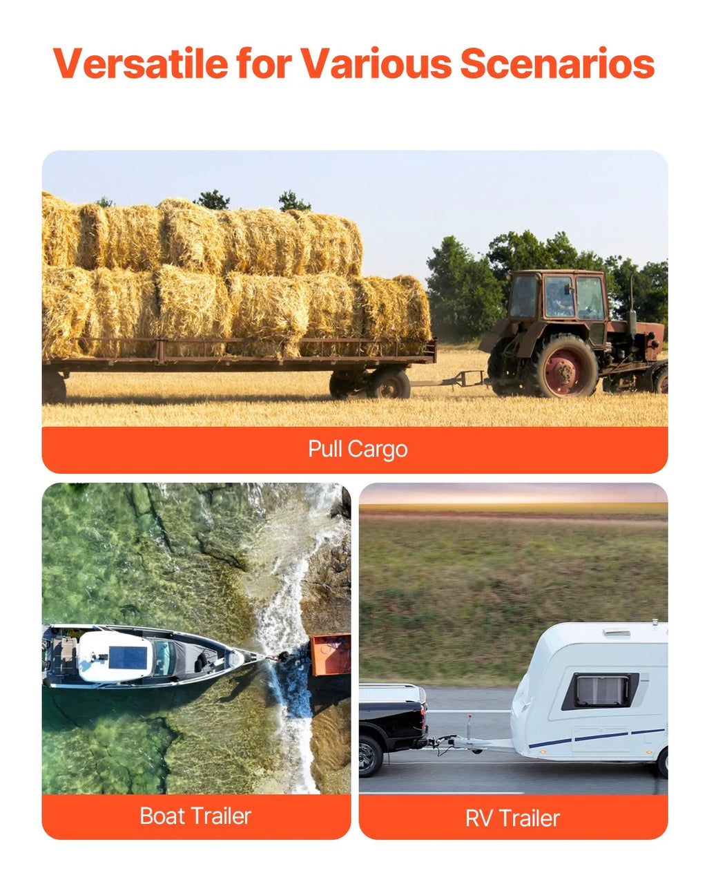 Vilces ietilpība līdz 8 390 kg: Lodveida piekabes āķis izgatavots no izturīga oglekļa tērauda, nodrošinot drošību un uzticamību smagas vilkšanas laikā. Pēc profesionāliem testiem 58,7 mm lodveida āķis ir novērtēts līdz 8 390 kg kravnesībai, kas ļauj vilkt smagos kravas auto vai kemperus.
