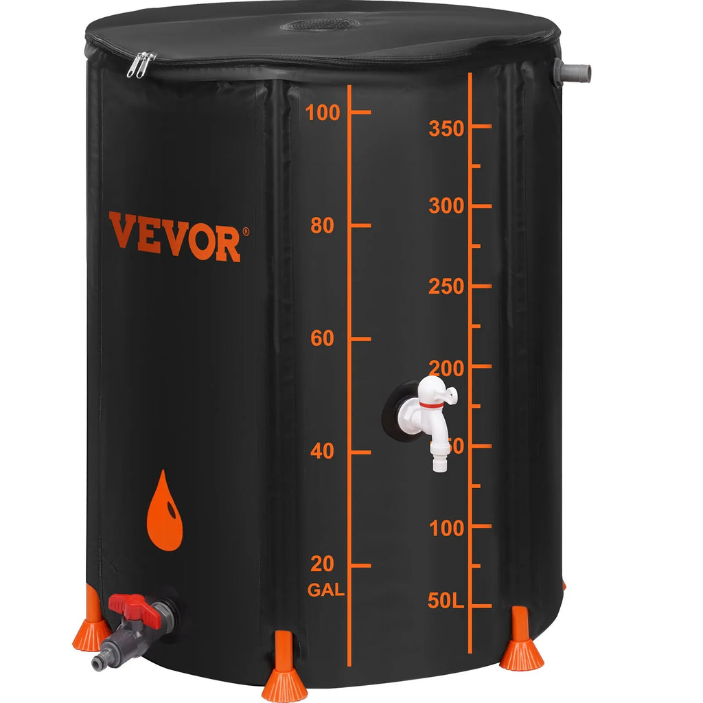 Prefabricated rainwater tank 380 litres, PVC rainwater harvesting system with taps and overflow kit, portable water storage container for garden, black