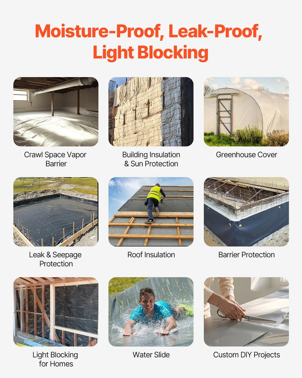 Plašs pielietojums: Šī pagrīdes tvaika barjera ir piemērota nezāļu kontrolei, aizsargbarjerām, siltumizolācijai, mitruma un ūdens iesūkšanās novēršanai, kā arī gaismas bloķēšanai. Tā ir piemērota gan lauksaimniecības, gan būvniecības vajadzībām.