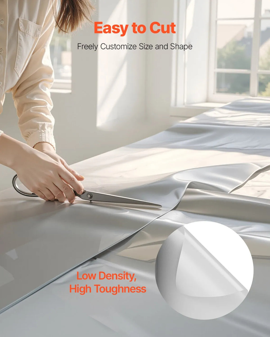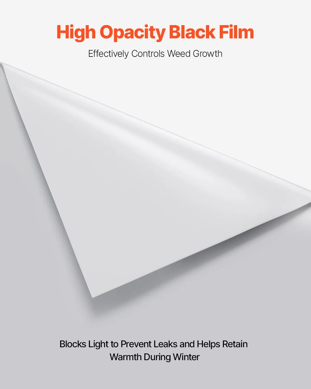 Izcila izturība un noturība pret laikapstākļiem: Izgatavota no 8 mil / 0,2 mm bieza izturīga polietilēna, šī plastmasas plēve nodrošina augstu mehānisko izturību un ilgmūžību. Tā ir noturīga pret plīsumiem un spēj izturēt skarbus apstākļus, tostarp spēcīgu vēju, zemu temperatūru un intensīvu saules starojumu, nodrošinot ilgstošu kalpošanu.