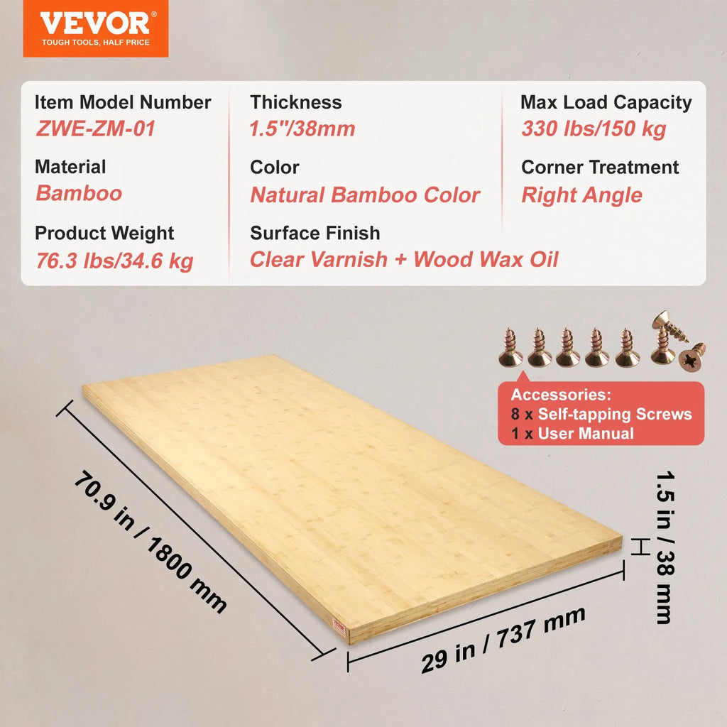 The VEVOR bamboo top is heavy and stable, weighing up to 34.6 kg, providing a firm support for any task. It prevents the surface from swaying or moving, ensuring a smooth and safe working environment even under heavy loads. The ideal surface for tasks requiring maximum stability.