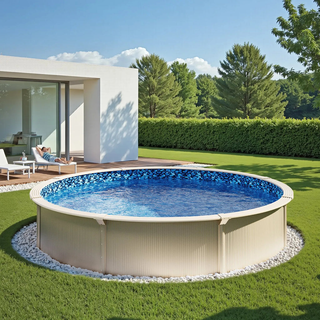 Izgatavots no izturīga un gluda vinila, šis virszemes baseina ieliktnis nodrošina augstu aizsardzības līmeni. Tas ir noturīgs pret caurduršanu, noplūdēm, hloru, saules starojumu un tīrīšanas līdzekļiem, garantējot ilgu kalpošanas laiku.