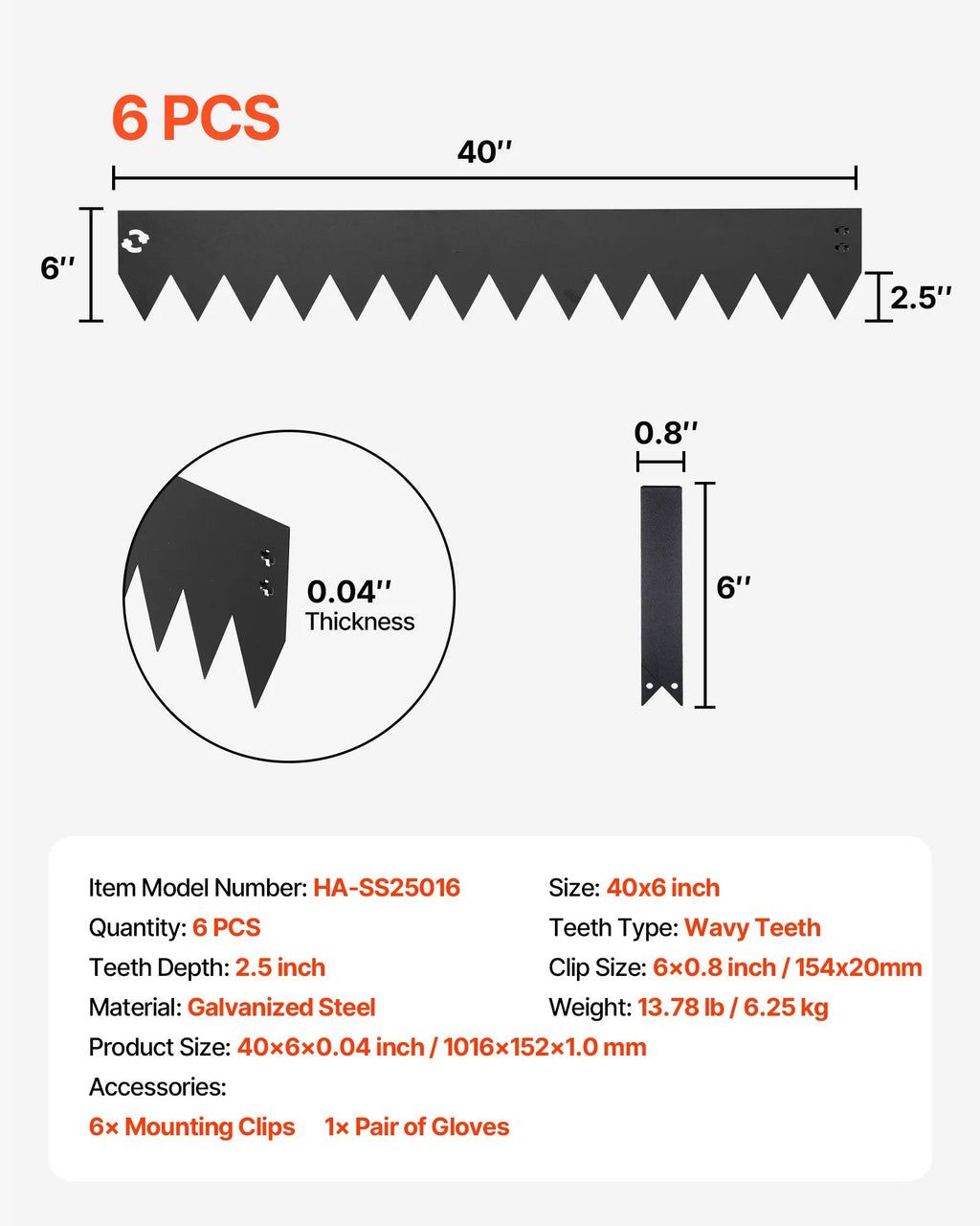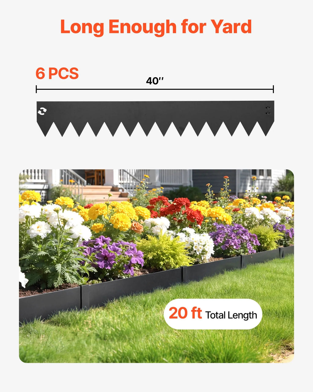 Pilns komplekts gatavs lietošanai: Komplektā ietilpst 6 apmaļu sekcijas, 6 stiprinājuma klipši un 1 pāris cimdu. Pagarinātie tapas viegli ieslīd augsnē, padarot uzstādīšanu ērtāku un ātrāku.
