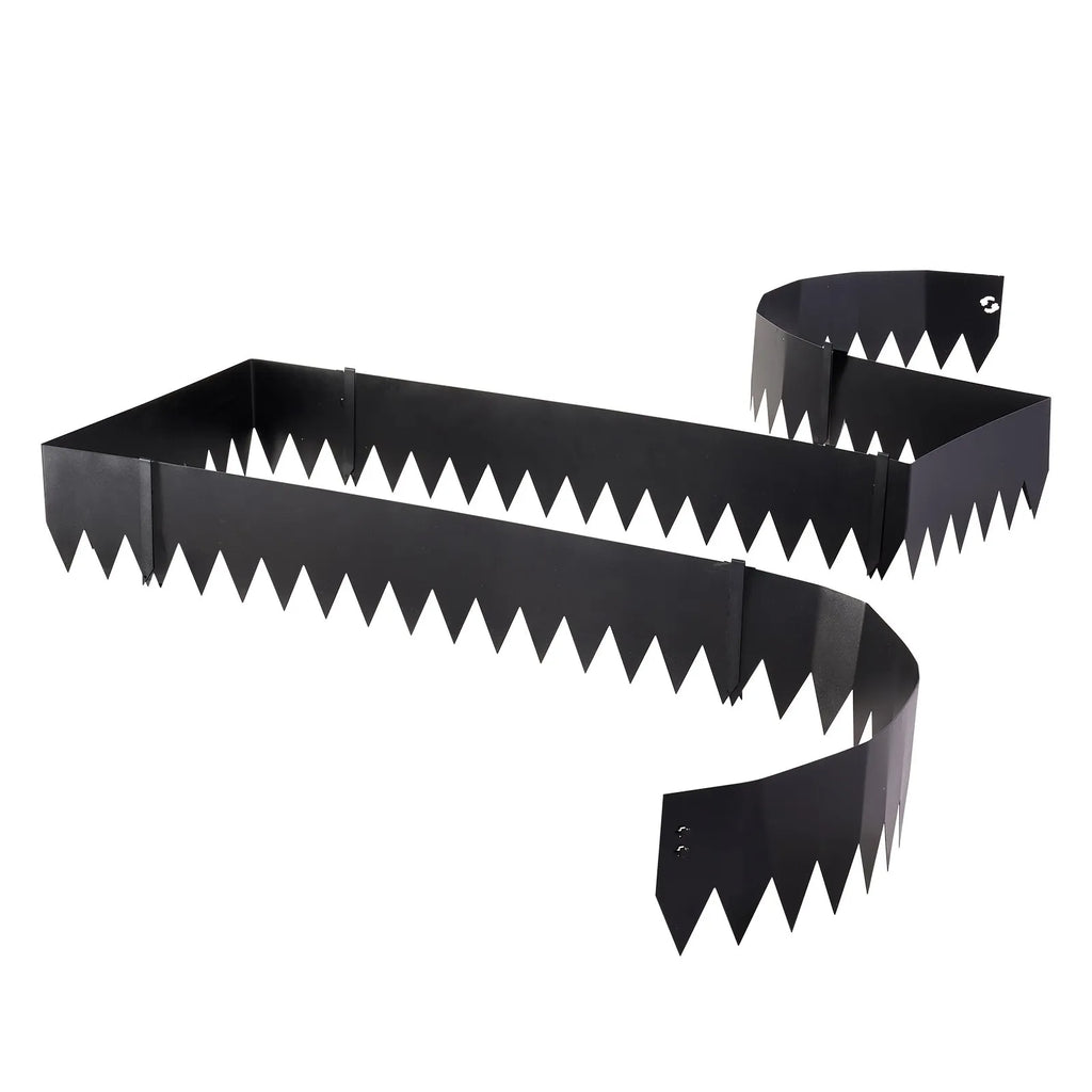 Izturīgs cinkots tērauds: Šī metāla zāliena apmale ir izgatavota no cinkota tērauda ar apstrādātu virsmu, kas palīdz pretoties rūsai, izbalēšanai un plaisāšanai. Dārza apmales saglabā kārtīgu un uzticamu izskatu dažādos laikapstākļos.