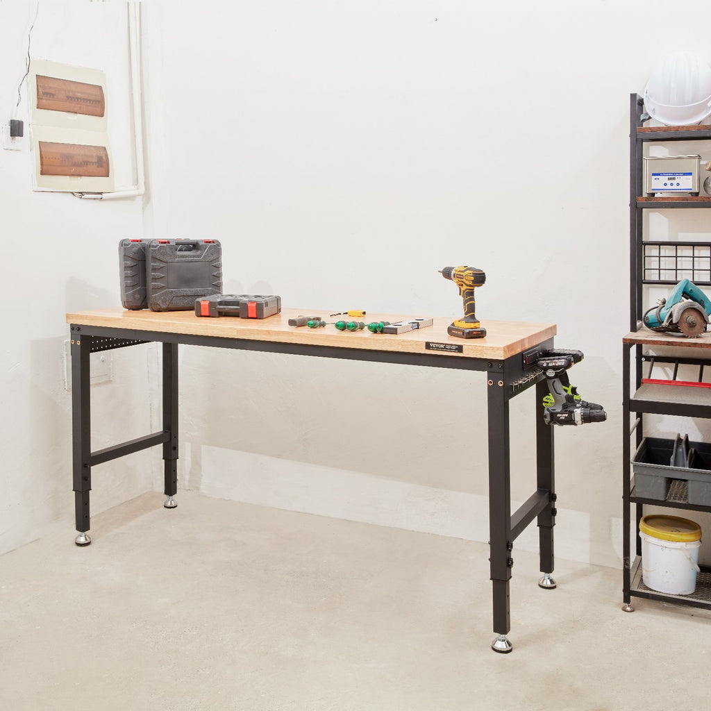 Enjoy unrivalled versatility with our height-adjustable solid workbench. Easily adjust the height of your desk to your preference, whether you prefer to work standing up or sitting down. The VEVOR solid wood workbench makes it easy to adjust your workstation.
