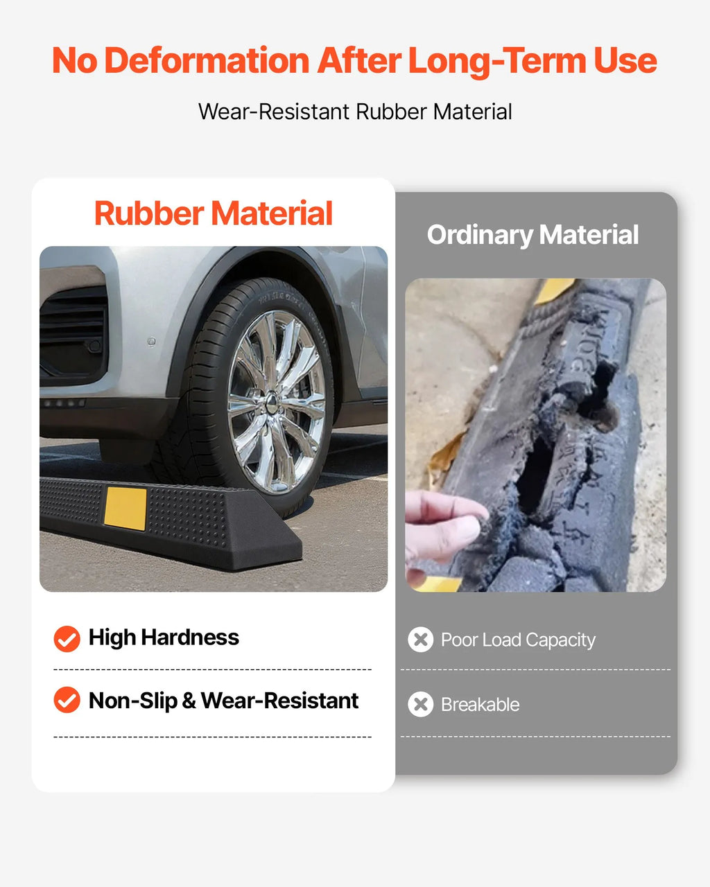 Divdaļīgi stāvvietas apstādinātāji ar izmēru apm. 1830 × 152 × 102 mm, piemēroti automašīnām, kravas automobiļiem, piekabēm, kemperiem un pat nelielu lidaparātu riepām. Atvieglo novietošanu stāvvietā, novērš sadursmes un pasargā transportlīdzekli no bojājumiem.