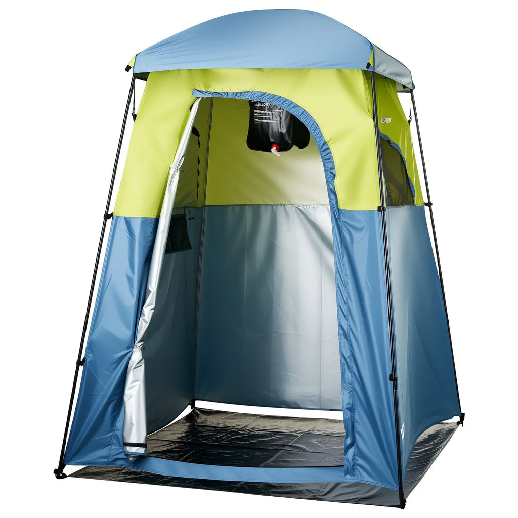 Daudzfunkcionāla telts: Privātuma telts ar izmēriem 1676 x 1676 x 2184 mm nodrošina pietiekamu vietu dušai. Tā nodrošina ventilāciju, izmantojot kā pārvietojamu tualeti, un kalpo kā privāta zona ātrai dušai, higiēnas vajadzībām vai apģērba maiņai.
