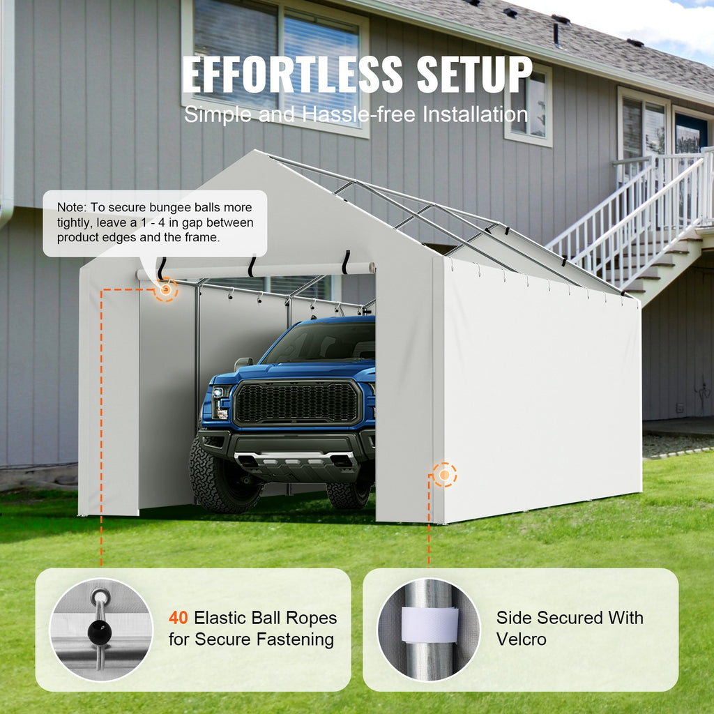 The VEVOR replacement awning cover is easy to install and requires no installation difficulties. It fits precisely to the standard 3x6 m awning frames. The cover has 40 aluminium rings for secure fixing. The installation process is simple and comes with elastic ball ties for quick installation. You can install it alone or with a friend. The cover stays in place even in windy weather and the metal rings prevent it from moving or fluttering, making it a reliable choice for your carport needs.