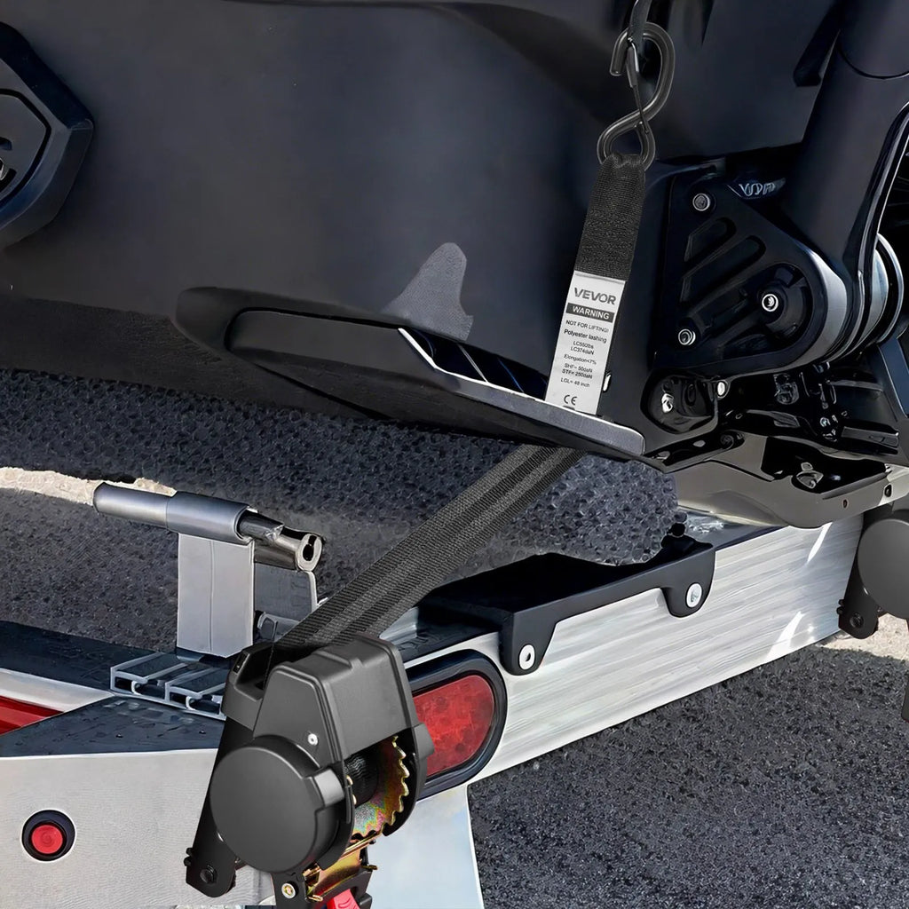 Fiksēta tipa komplekts ar 50,8 mm platu un 1219 mm garu siksnu, piemērots piekabēm, laivām un sniega motocikliem.