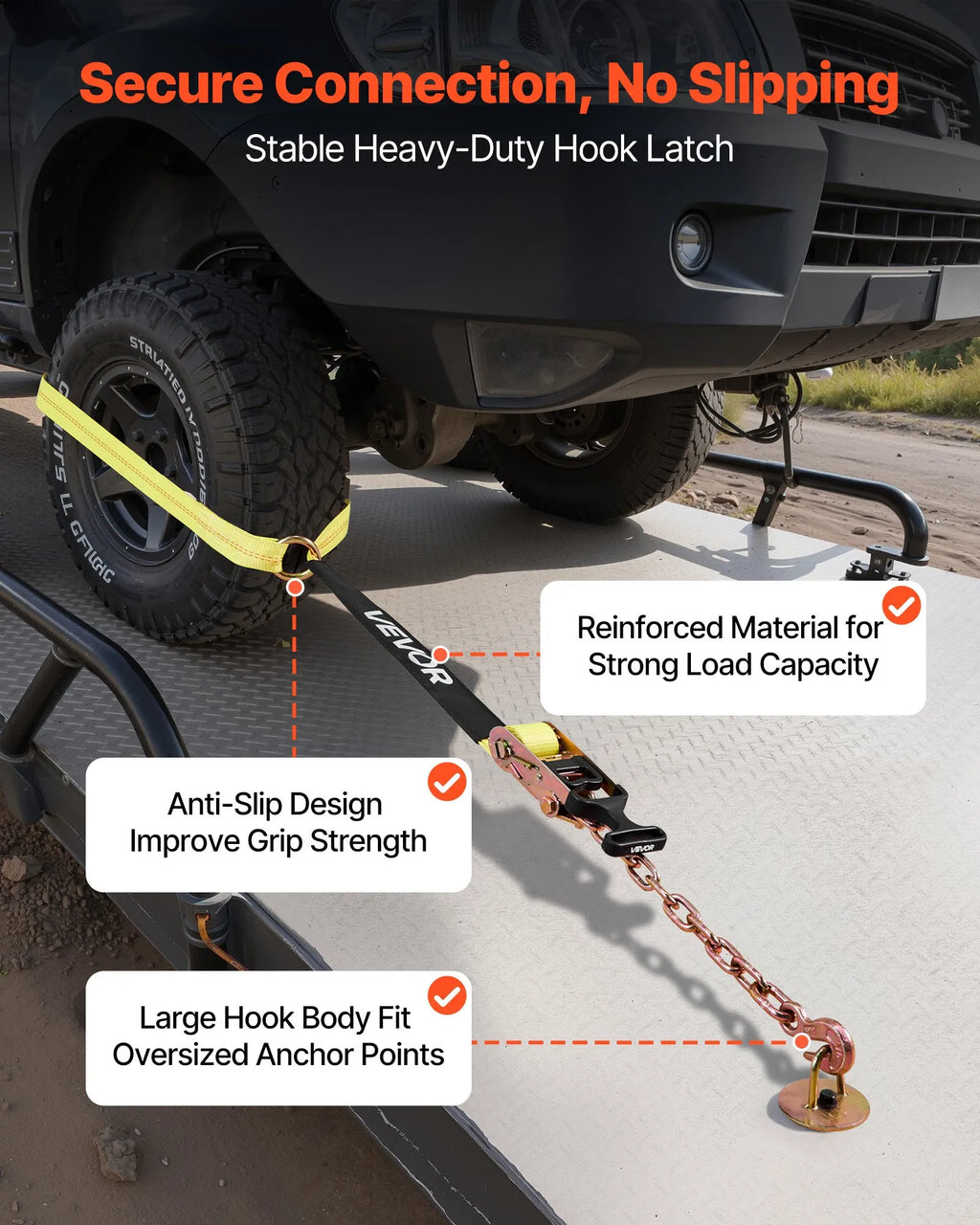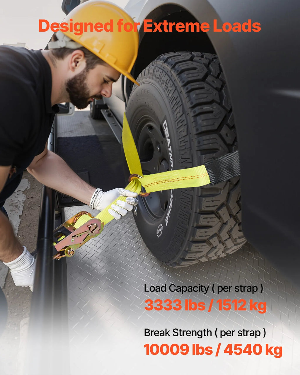 Izgatavota no augstas izturības siksnas materiāla, nodrošina 1512 kg darba slodzi un 4540 kg pārrāvuma slodzi. Konstrukcija paredzēta maksimālai izturībai, garantējot drošu smagu transportlīdzekļu nostiprināšanu bez atslābšanas vai pārrāvuma riska.