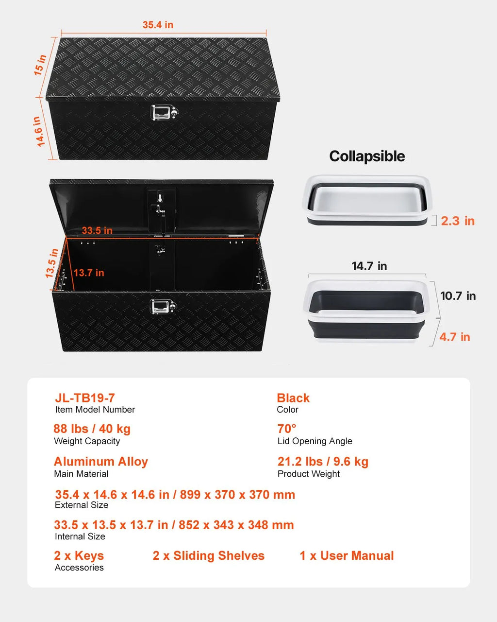 Šī ietilpīgā kravas kastes instrumentu kaste ir 899 × 370 × 370 mm izmērā un nodrošina pietiekami daudz vietas spaiņiem, apkopes instrumentiem, ugunsdzēšamajiem aparātiem, brīdinājuma zīmēm, kā arī kempinga un makšķerēšanas aprīkojumam. Piemērota pikapiem, treileriem, kemperiem, kā arī mājas un noliktavu lietošanai.