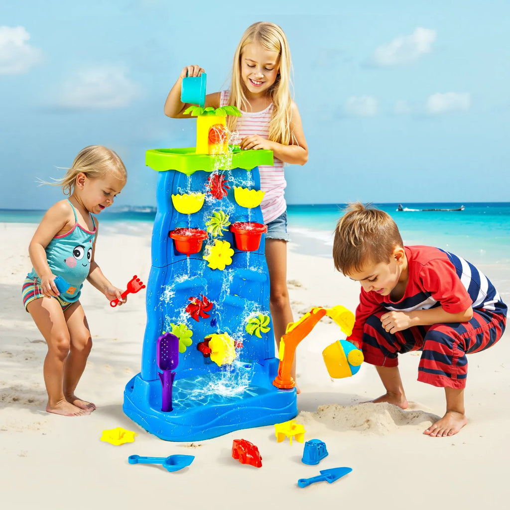 Ar daudziem piederumiem — ūdens dzirnaviņām, kokosriekstu kokiem, pludmales rīkiem, ūdens ratiem, ekskavatoru, laivu un citiem elementiem — bērni var radīt aizraujošas spēļu ainas, izmantojot savu bagāto iztēli kopā ar VEVOR ūdenskrituma rotaļu galdu.