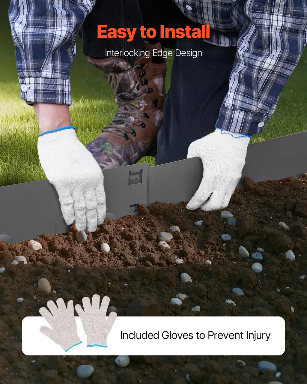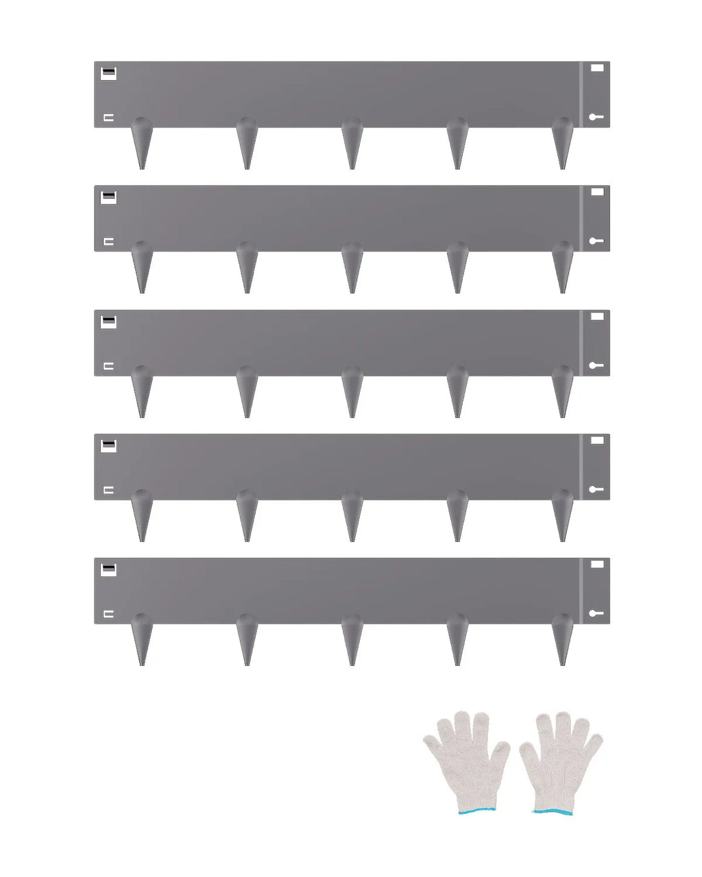 Komplektā ietilpst: Komplektā ir 5 metāla puķu dobes apmales, 1 pāris uzstādīšanas cimdu un 1 lietošanas instrukcija. Pagarinātais smailes dizains palīdz apmalei ar mazāku piepūli iespiesties zemē, nodrošinot vieglāku uzstādīšanu. Pavadiet vairāk laika, baudot savu dārzu, un mazāk laika tā uzturēšanai.