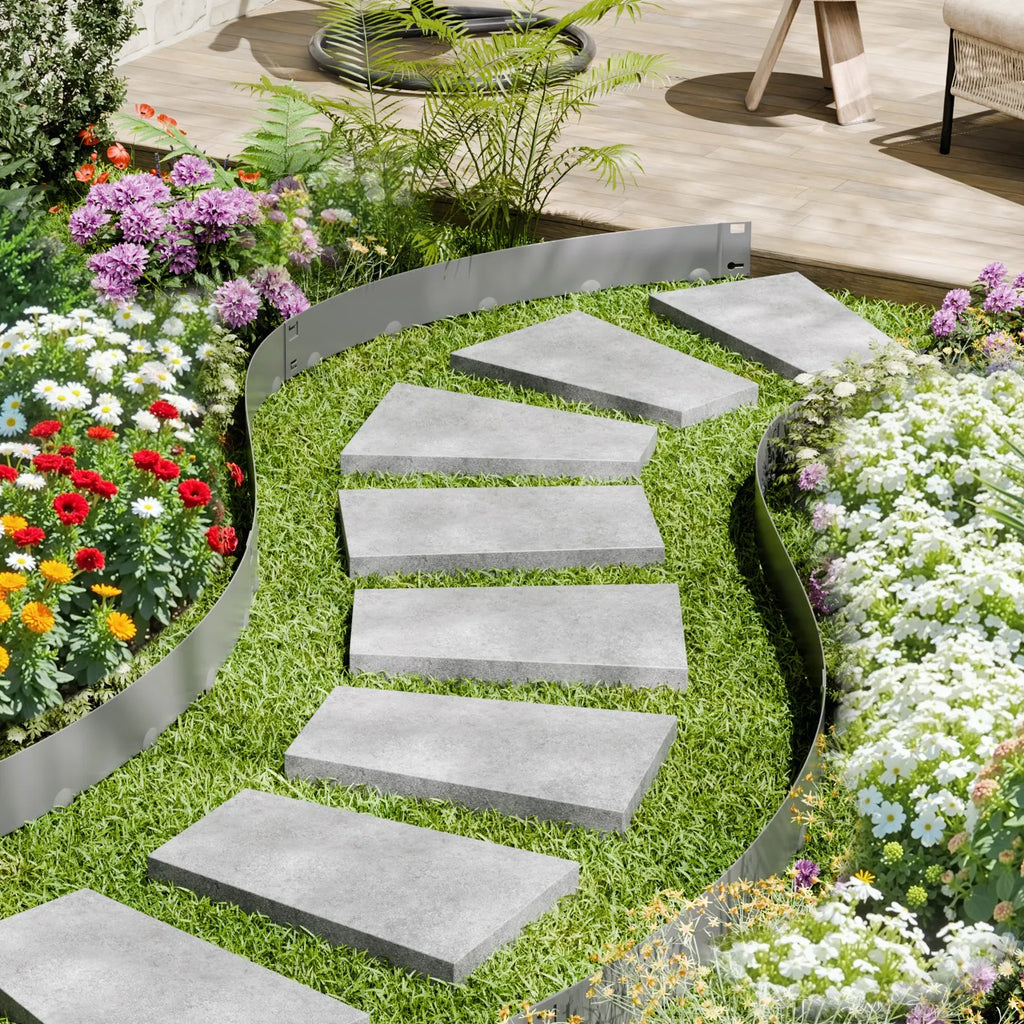 Elastīga un lokāma: Šī pagalma apmale ir gan elastīga, gan izturīga. To var viegli saliekt jebkurā formā — neatkarīgi no tā, vai jūsu dārzs ir kvadrātveida, apaļš vai neregulārs — nesabojājot materiālu, nodrošinot precīzu pielāgošanos jūsu ainavas dizainam.