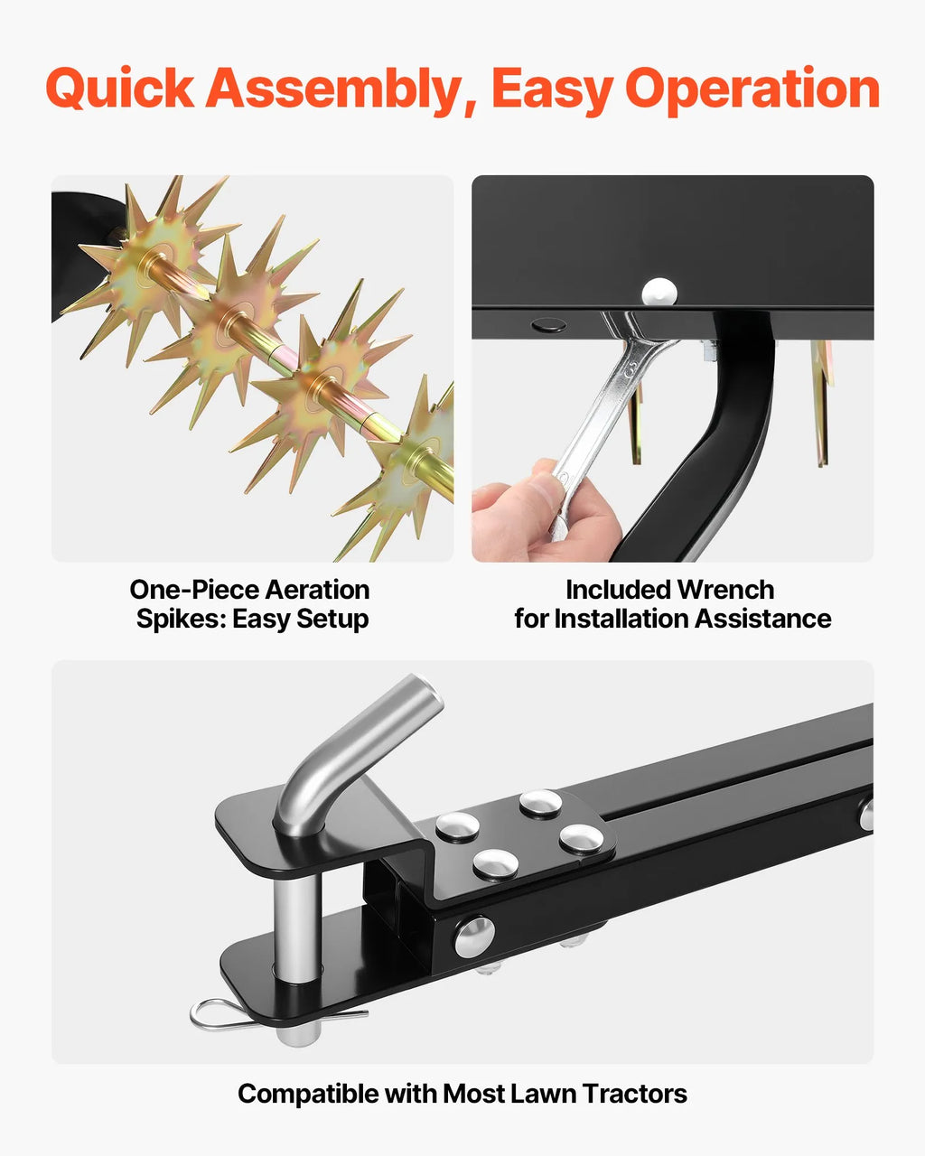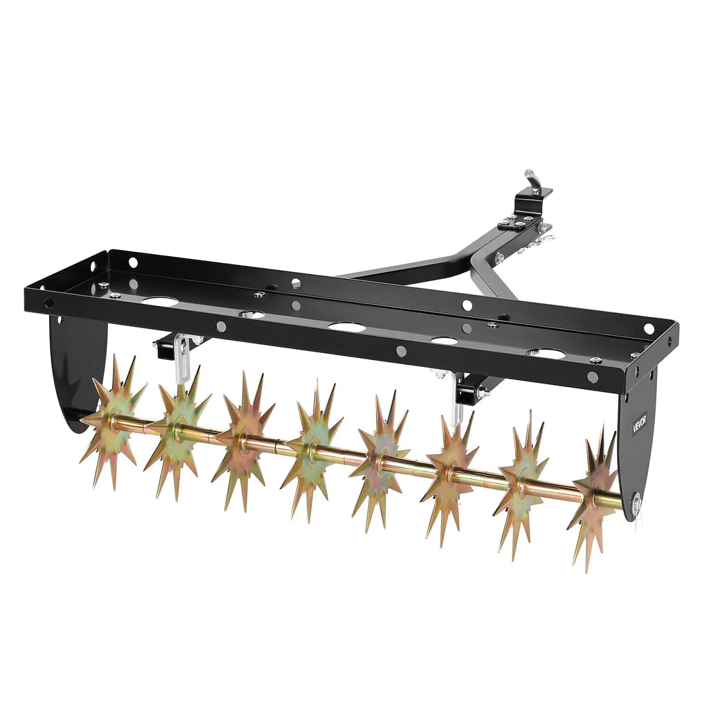 81 cm īpaši plata darba zona: Šis velkamais zāliena aerators ar 81 cm darba platumu ļauj apstrādāt lielākas teritorijas ar mazāku piegājienu skaitu. Viegli pievienojams zāliena traktoram vai dārza tehnikai, uzlabojot augsnes ventilāciju un ūdens drenāžu.