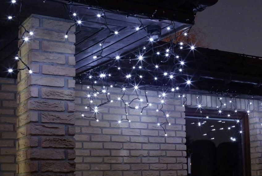 Ziemassvētku LED lāsteku virtene ar 500 lampiņām un zaļu BIEZU kabeli, auksti balta gaisma, zibspuldzes efekts, 18.5m, IP44