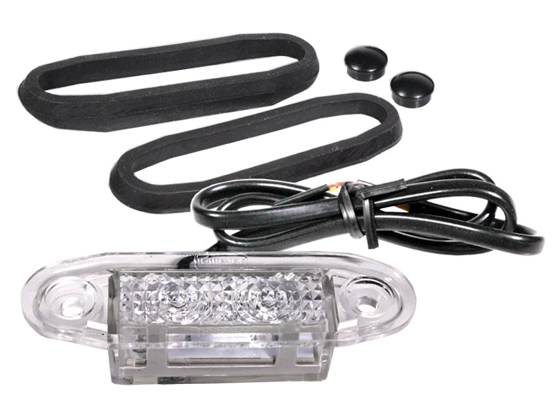 10-30 V kollane LED-märgutuli, 2 LED-iga, ilma E-kinnituseta. Juhtme pikkus 0,5 m, kruvi kaugus 58 mm.