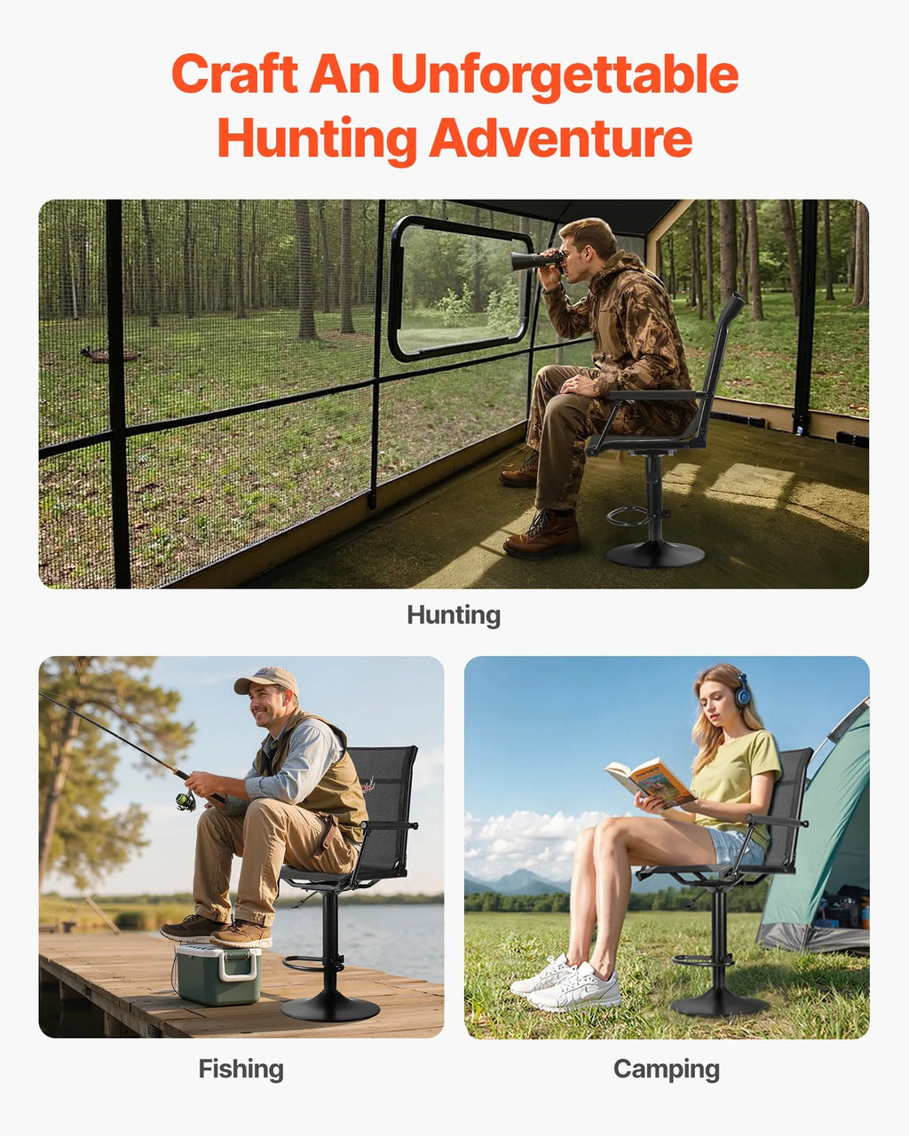 Jahitool, 360° vaikselt pöörlev, kerge varitsustool polsterdatud käetugedega, reguleeritav kõrgus, tugev terasraam, 136 kg kandevõime, sobib kalapüügiks ja telkimiseks.