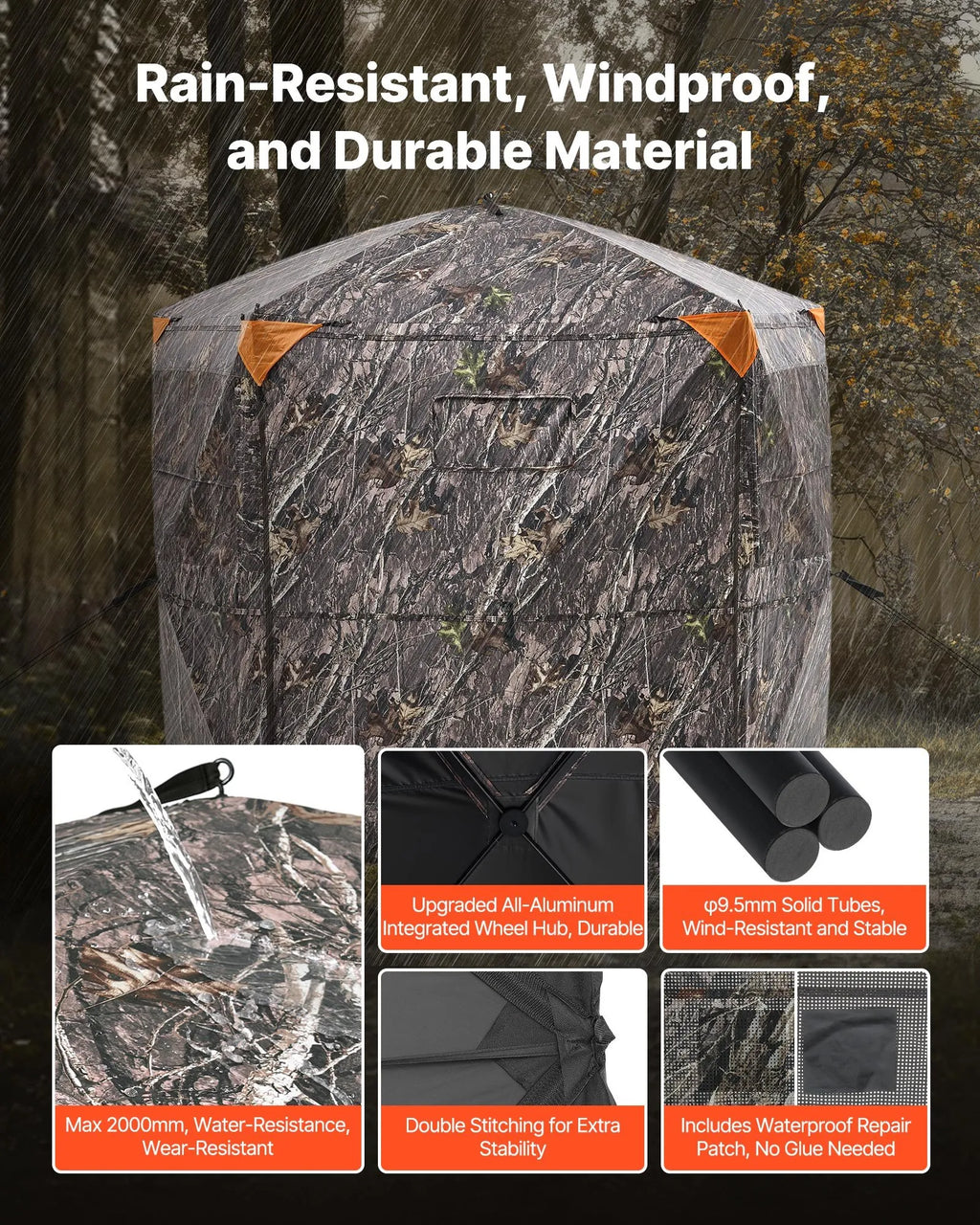 Jahipesa 6-7 inimesele koos kandekotiga, kaasaskantav kamuflaaž telk, tugevdatud vastupidav peidik, vaikse tõmblukuga ukse ja akna disainiga, sobib hirve- ja kalkunijahiks.