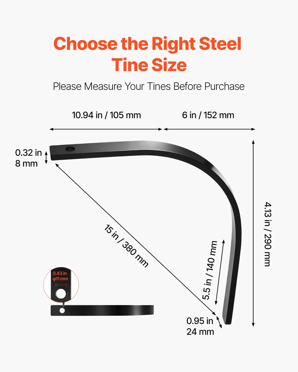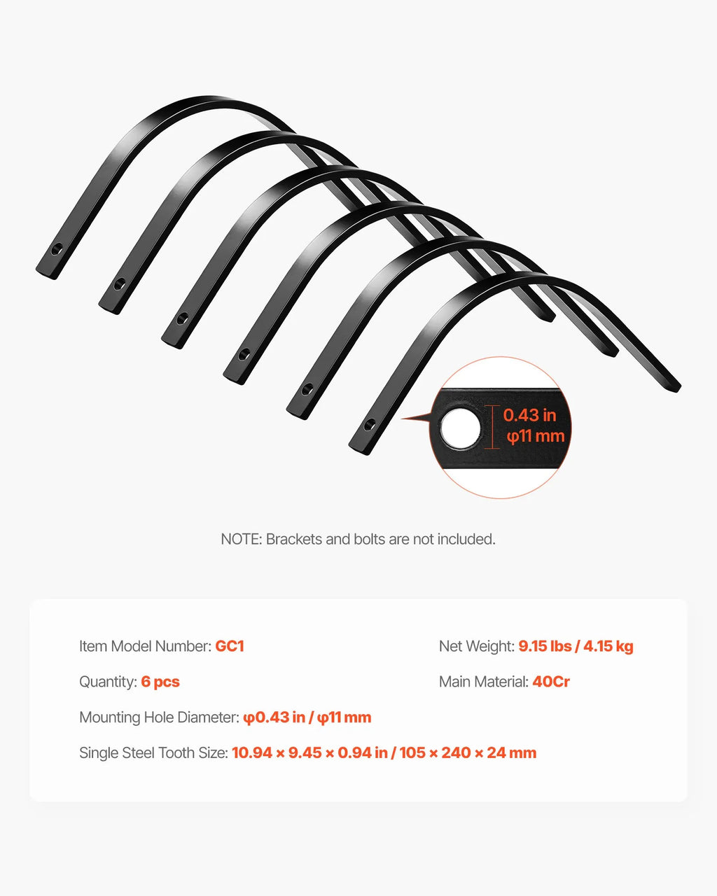 Pastiprināta izturība un ilgmūžība: Izgatavoti no augstas izturības, termiski apstrādāta tērauda ar paaugstinātu stingrību un elastību. Šie rezerves zobi ir izturīgi pret koroziju un triecieniem, paredzēti intensīviem pagalma un teritorijas kopšanas darbiem bez plaisāšanas vai lūšanas.