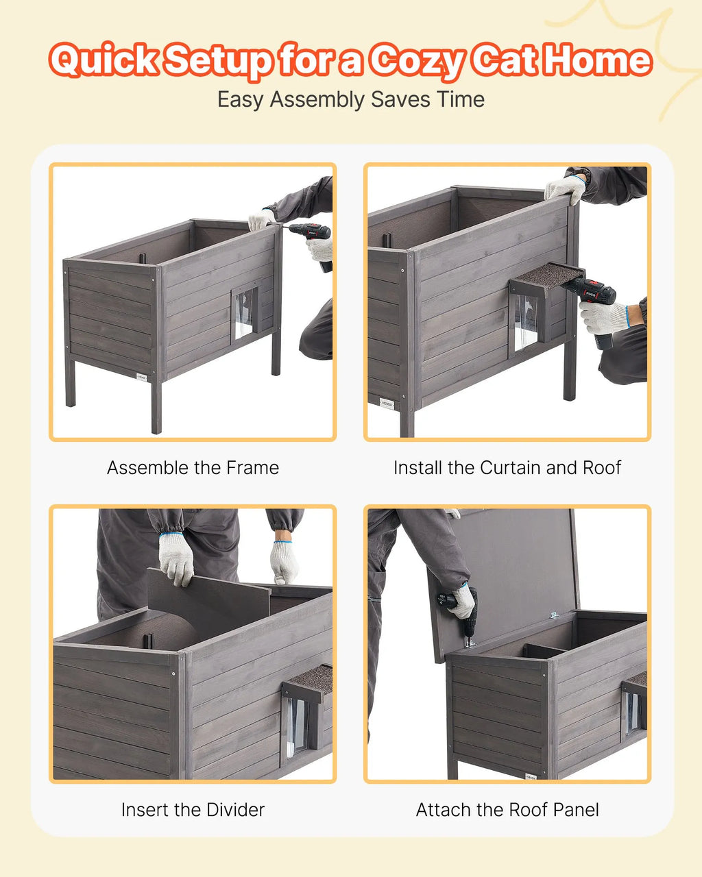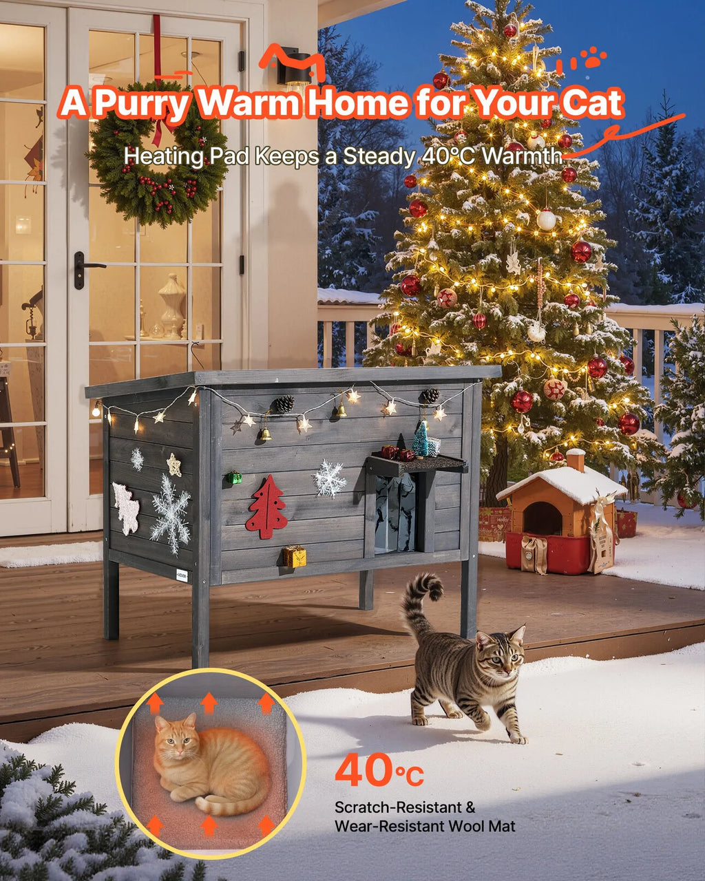 VEVOR soojendusega kassimaja, isoleeritud puidust maja väliskassidele, veekindel varjualune koos soojenduspadjaga, PVC uksekardinaga ja avatava bituumenkattega, 87 x 53,5 x 69 cm, sobib talvel 1-3 kassile