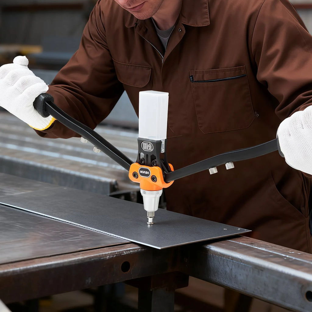 Daudzmateriālu pielietojums: Šis manuālās kniedēšanas komplekts nodrošina uzticamu stiprinājumu alumīnijam, tēraudam, nerūsējošajam tēraudam un citiem materiāliem. Piemērots gan profesionāļiem, gan DIY lietotājiem, garantējot stabilu rezultātu dažādos materiālos un biezumos