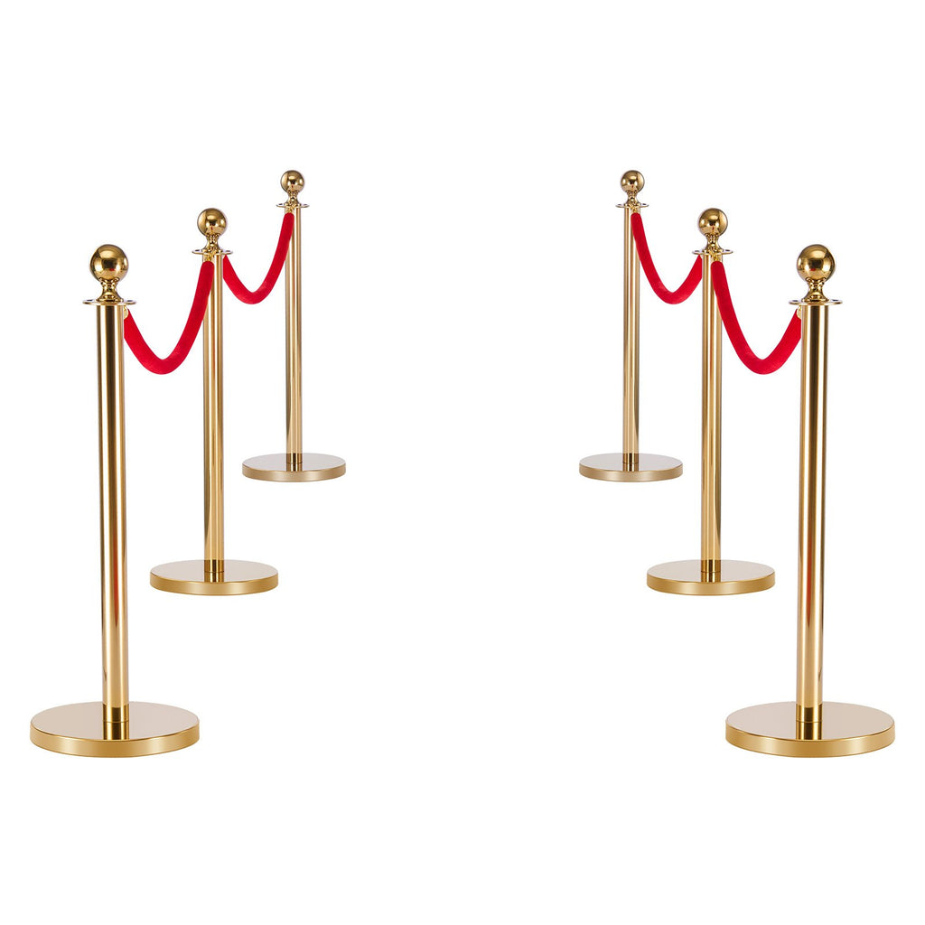 VEVOR norobežojošo stabu komplekts, 6 gab. cilvēku plūsmas kontroles barjeru komplekts ar sarkanu paklāju, 4 sarkanas samta virves, nerūsējošā tērauda zelta krāsas stabi ar dobu pamatni rindām teātriem, ballītēm, kāzām un izstādēm