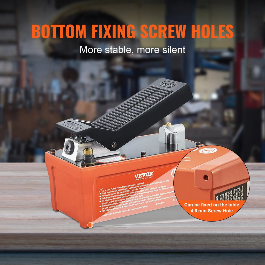 VEVOR Pneimohidrauliskais sūknis 6895 bar ar 1,9 L tvertni, eļļas izeja NPT 10 mm, ieeja NPT 6,4 mm, 2 m šļūtene, kājas pedāļa vadība, piemērots auto virsbūves rāmja labošanas iekārtām un vilkšanas statņiem, oranžs