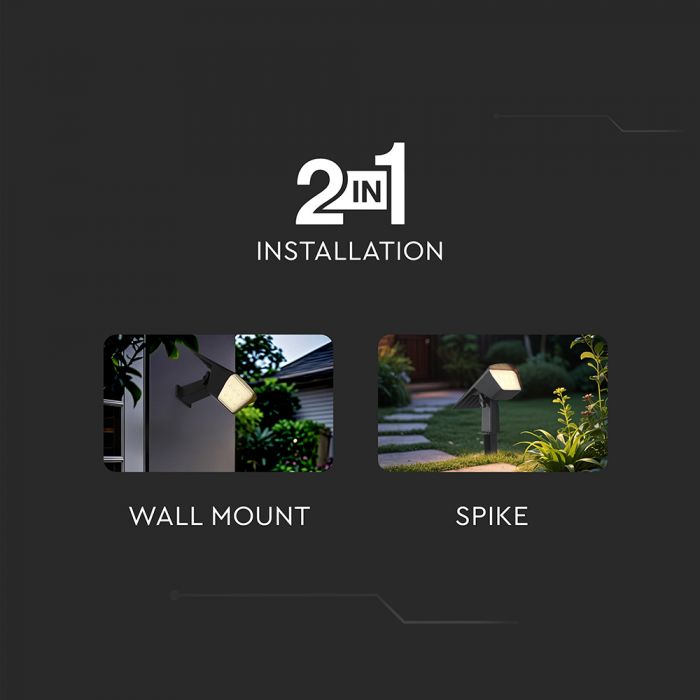 1.3W(100Lm) LED solārais dārza gaismeklis, V-TAC, IP65, melns, 2IN1