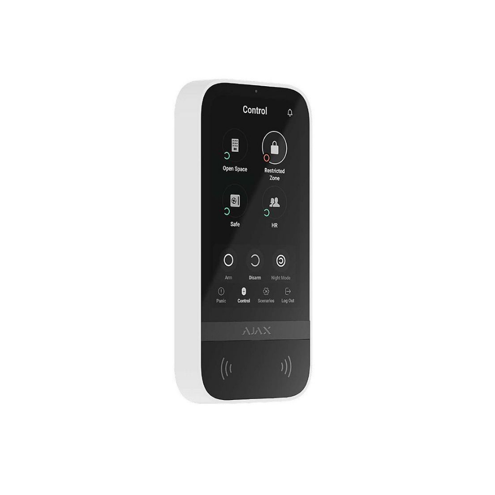 KeyPad TouchScreenis a wireless keypad with a touch screen designed for managing Ajax security systems. Users can authenticate using smartphones,Tagkey fobs,Passcards, and codes. The device is intended for indoor use only.