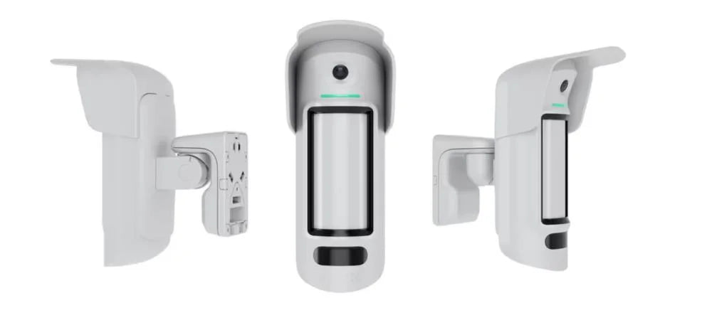 MotionCam Outdoor HighMount (PhOD) Jeweller is a wireless motion detector supporting photo verification. It is equipped with two IR sensors, an additional K-band microwave sensor, a camera, and an anti-masking system.