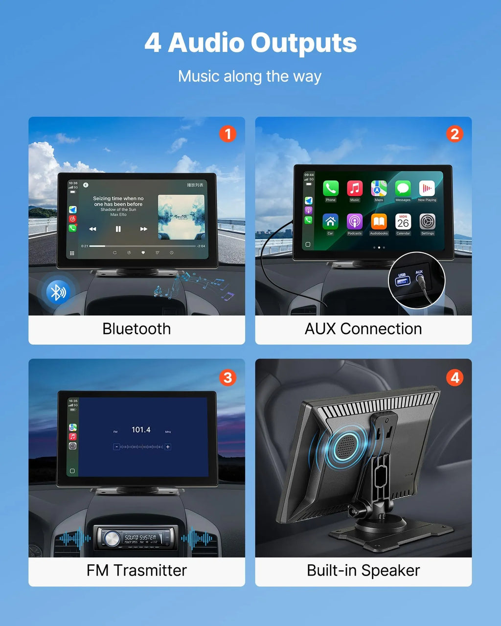 Auto multimediju sistēma ar 9 collu (228,6 mm) skārienekrānu, Apple CarPlay, Android Auto un atpakaļskata kameru