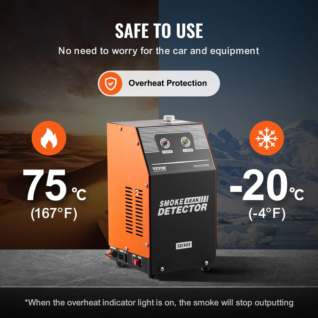 VEVOR automobiļu dūmu mašīna noplūžu noteikšanai izceļas dažādos testos: EVAP sistēma, degvielas tvertnes sistēma, izplūdes sistēma, ieplūdes sistēma, automašīnu hermētiskuma tests un dažādas cauruļvadu savienojumu noplūdes problēmas. Ideāli piemērota automašīnām, motocikliem, ATV, vieglajiem kravas auto un ātrumlaivām – universāls risinājums pilnvērtīgai transportlīdzekļu noplūžu diagnostikai.