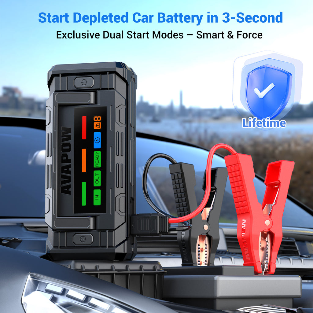 AVAPOW TJ68 6000A Akumulatora Palaidējs ar 4" HD Displeju, PD 65W Divvirzienu Ātro Uzlādi, 12V Starta Bloks Automašīnām – Piemērots Visiem Benzīna un Dīzeļa Dzinējiem