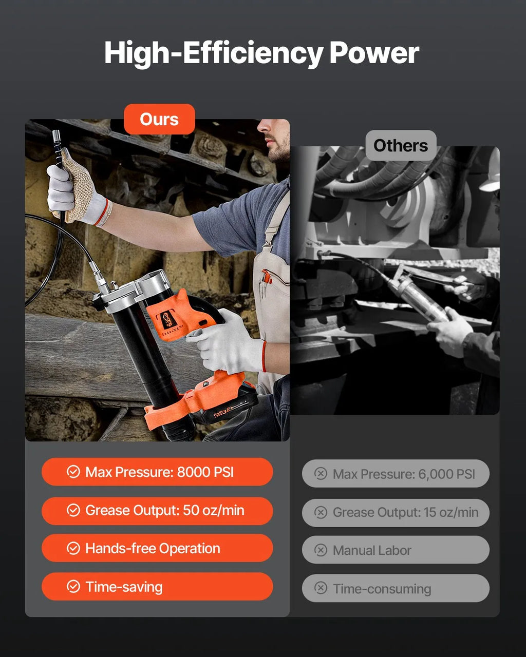 Bezvadu smērvielas pistole 55 MPa maksimālais spiediens, LED apgaismojumus, 900 mm šļūtene, saderīga ar 18 V Makita akumulatoriem (akumulators nav komplektā), piemērota transportlīdzekļu un iekārtu eļļošanai (tikai instruments)
