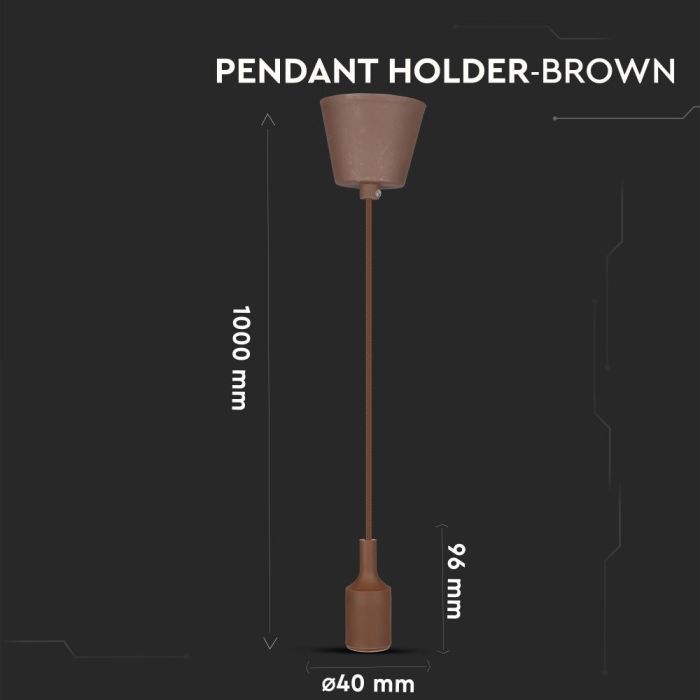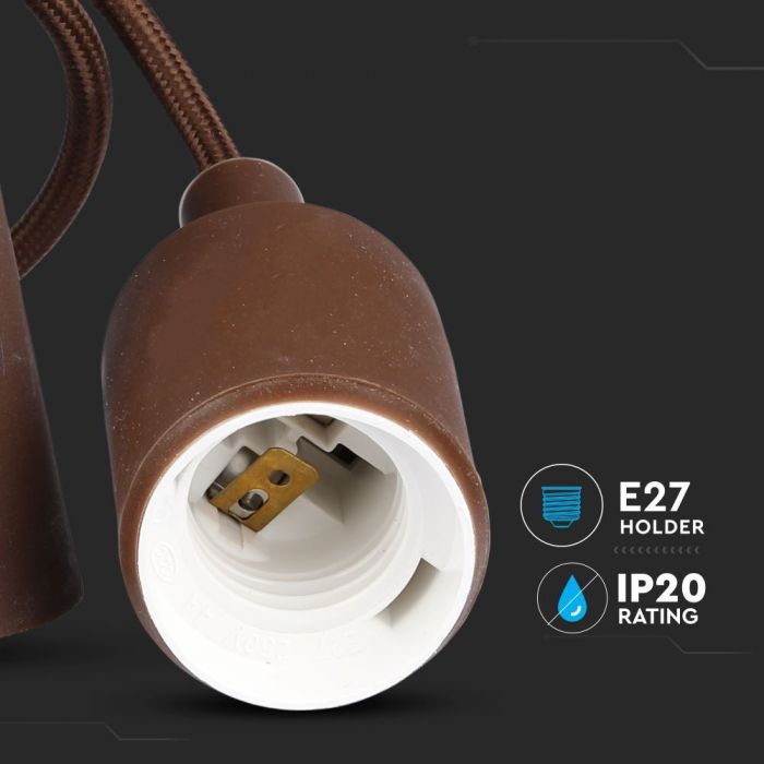Brūna E27 spuldzes patrona ar vadu un savienojumu pie griestiem, V-TAC