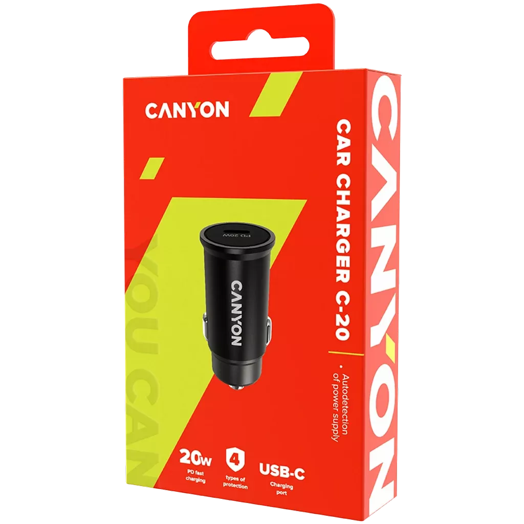 CANYON auto lādētājs C-20 PD 20W USB-C Melns