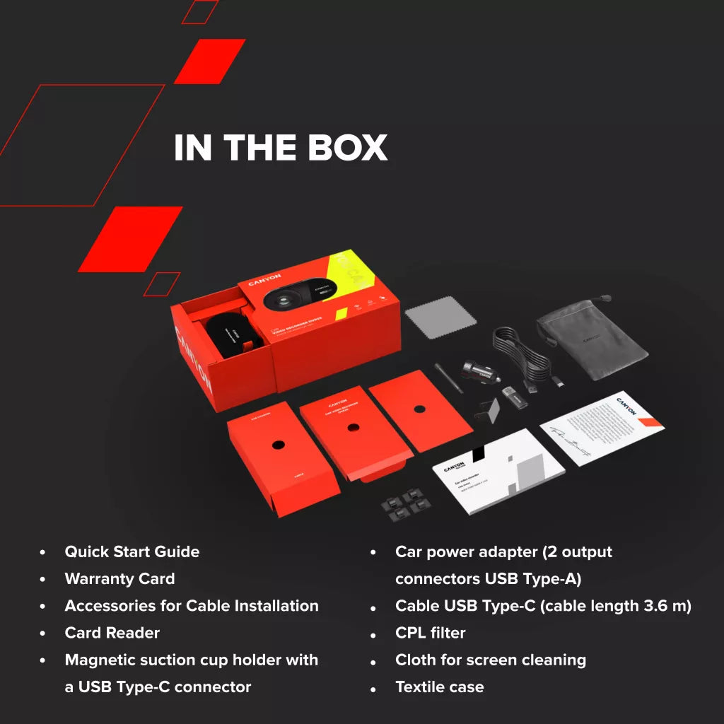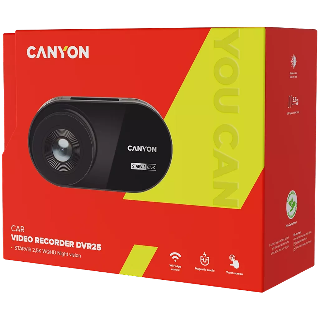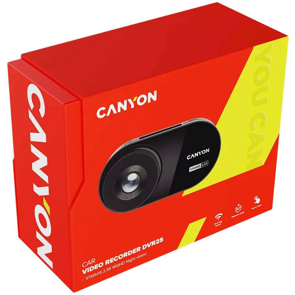 CANYON auto videoreģistrators DVR25 WQHD 2.5K 1440p Wi-Fi Melns