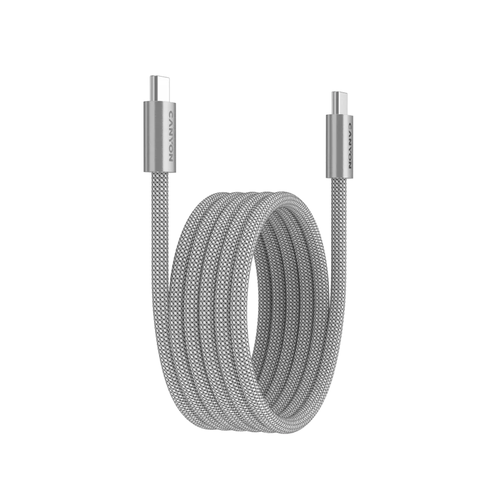 CANYON 60W 3A USB 2.0 C–C magnētiskais kabelis, Datu pārraide: līdz 480 Mb/s, 1 m, pelēks