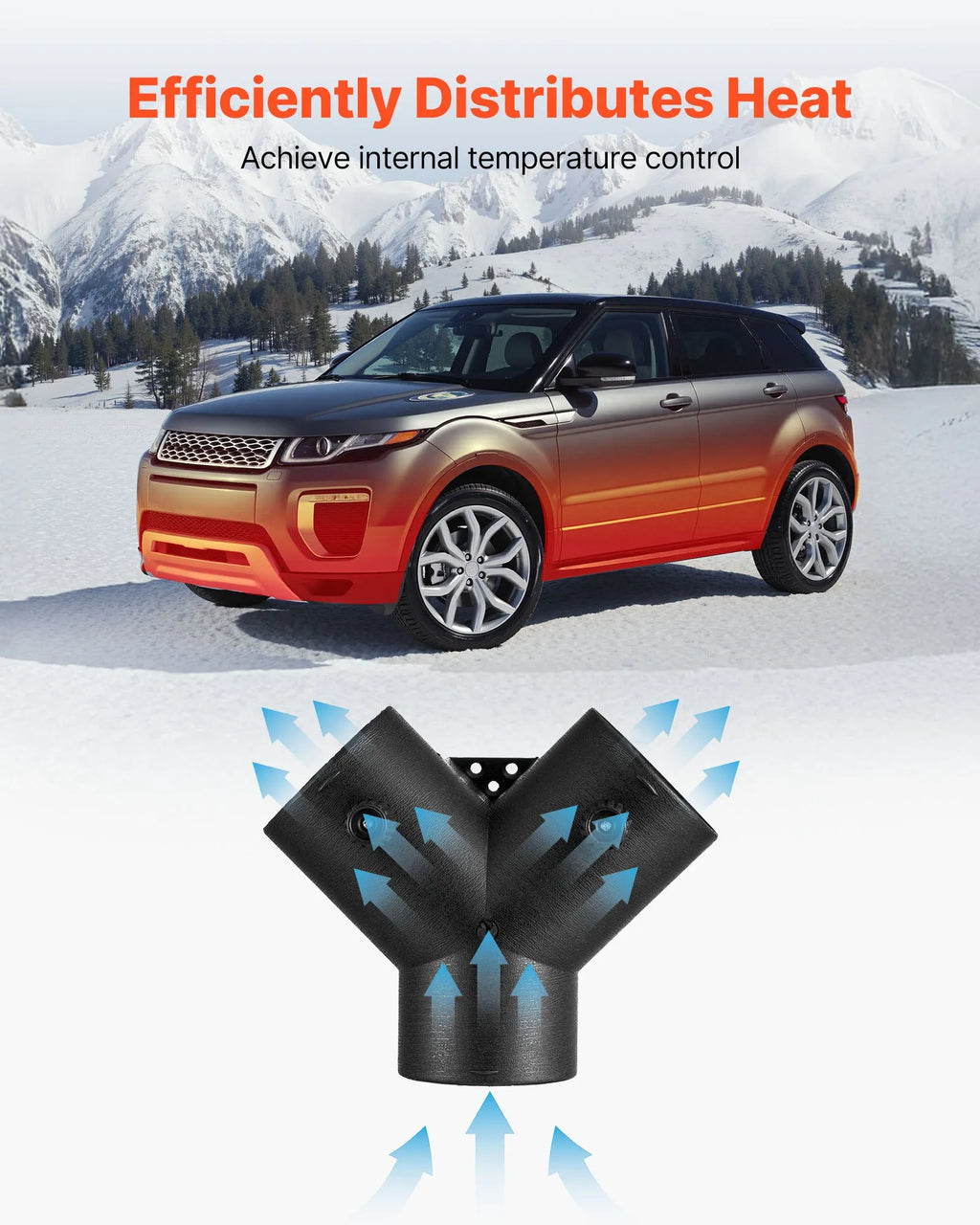 Dīzeļsildītāja savienotājs, 75 mm gaisa vada Y veida atzars ar 2 rotējošiem 90° vārstiem, melns savienojums 2 kW / 5 kW / 8 kW dīzeļsildītājiem