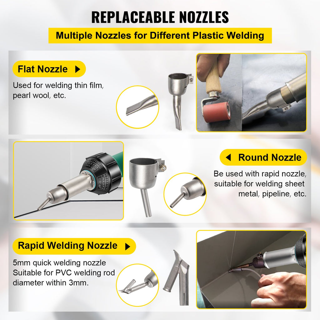 Fēna pistole 1600 W, 220 V, 8 daļu PVC komplekts, karstā gaisa pistole ar mikas sildīšanas kodolu, temperatūras regulēšana 40–600 °C