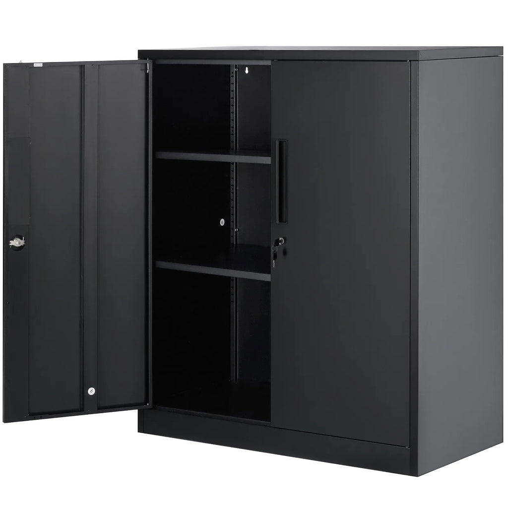 Izveidojiet savu uzglabāšanas vietu: No trim plauktiem divi ir regulējami un noņemami, lai pielāgotos mainīgajām vajadzībām. Vai nepieciešams uzglabāt garus vai īsus priekšmetus – šis slēdzamais skapis viegli pielāgojas. To var izmantot birojā dokumentiem un mapēm, vai garāžā un darbnīcā instrumentiem un piederumiem.