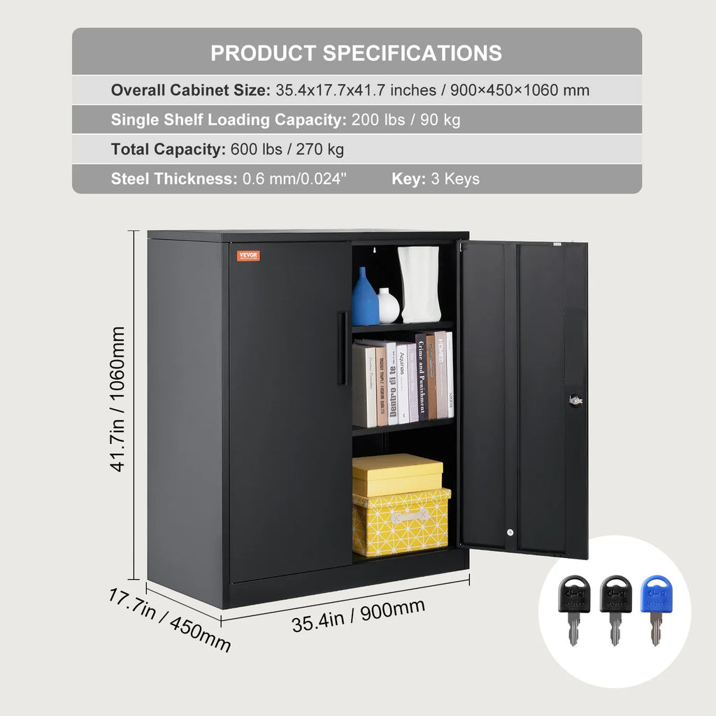 Stipra nestspēja un kārtīga uzglabāšana: Pārvaldiet savu uzglabāšanu ar VEVOR metāla skapi! Ar nestspēju 90 kg uz plaukta šis skapis kopumā iztur 270 kg, nodrošinot pietiekami daudz vietas mantu glabāšanai un kārtībai. Atvadieties no nekārtības un izbaudiet tīru un organizētu telpu ar mūsu izturīgo skapi.