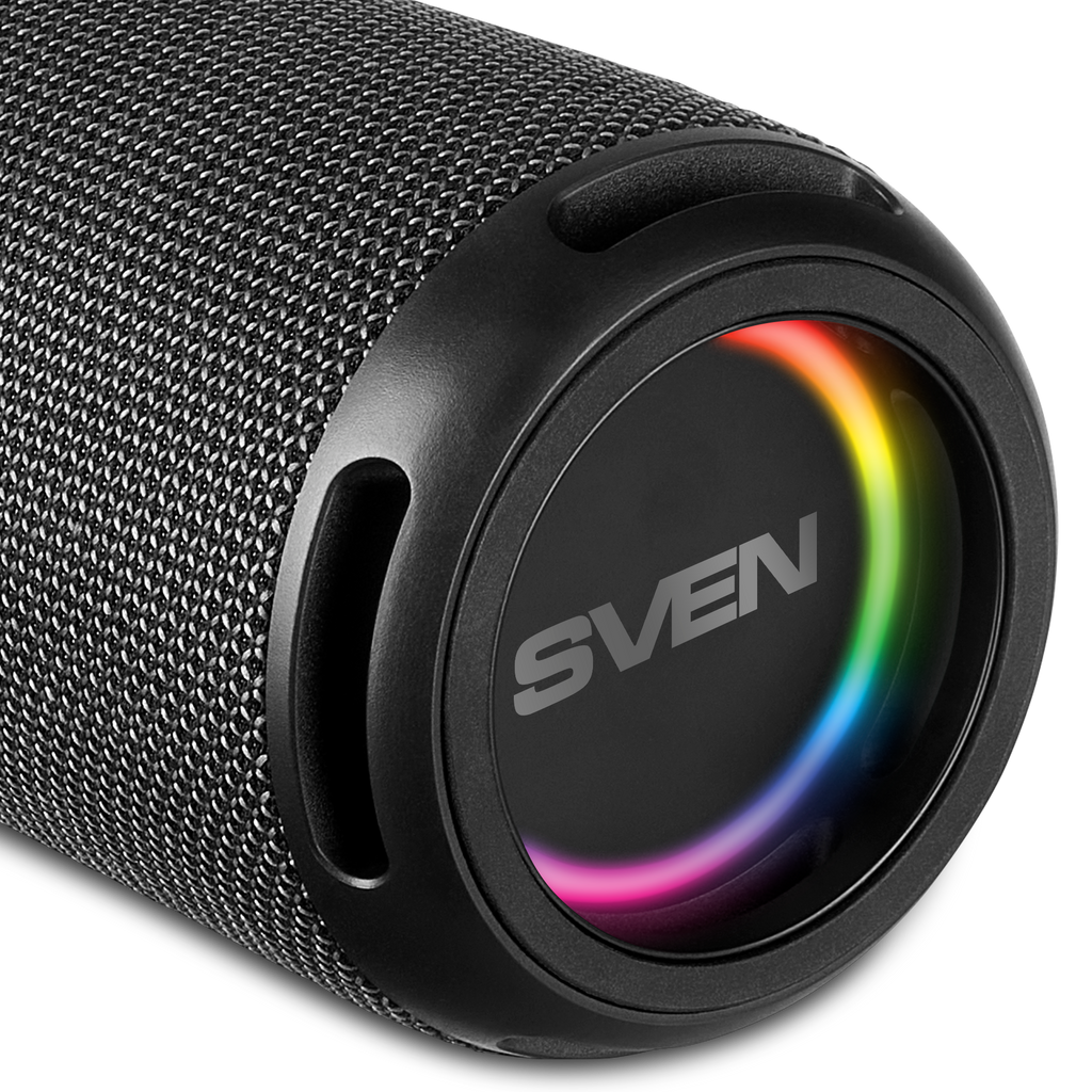 Pārnēsājamais skaļrunis SVEN PS-150, melns, 2×5 W RMS, Bluetooth, TWS, FM, USB, litija akumulators