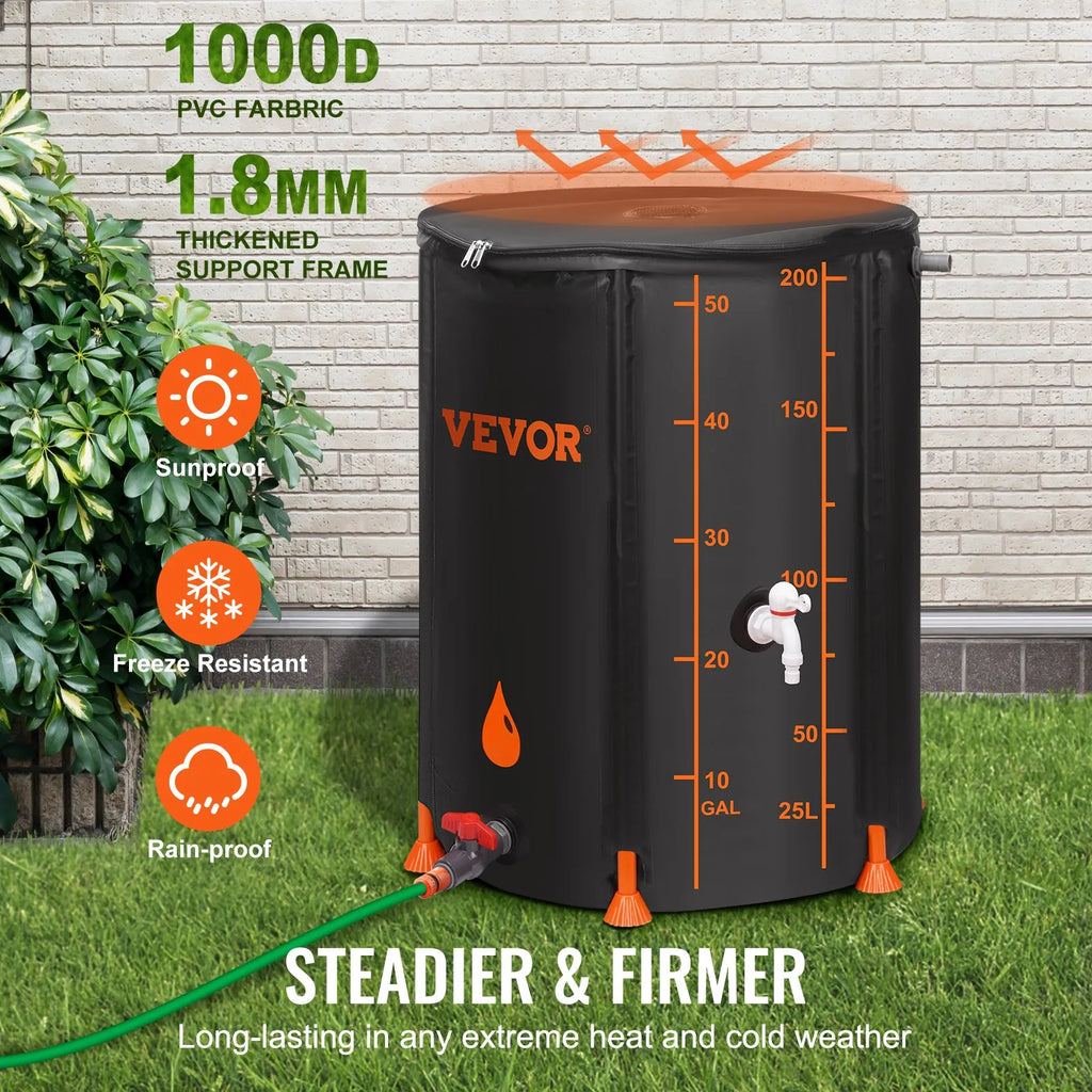 Ja vēlaties maksimālu ūdens uzglabāšanas ietilpību par viszemāko cenu, izvēlieties VEVOR ūdens uzglabāšanas tvertni. Ar 201 litru ietilpību tā ir viena no lielākajām tvertnēm par zemāko cenu. Jūs būsiet gatavi pat sausuma periodam!