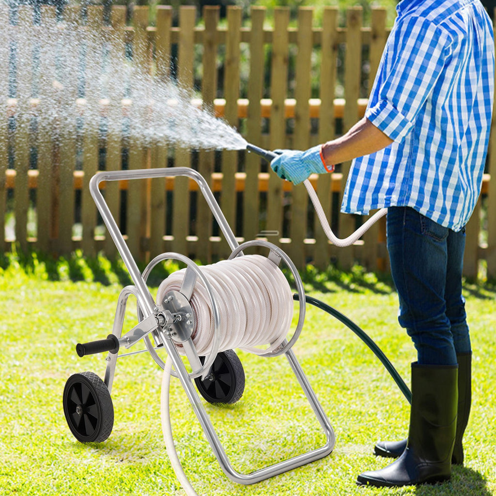 VEVOR smagās slodzes šļūtenes spoles ratiņiem ir cietie PVC riteņi, kas nodrošina palielinātu stabilitāti un manevrējamību. Riteņi ir izstrādāti, lai tiktu galā ar dažādiem apvidiem, padarot to viegli pārvietojamu pa jūsu dārzu vai pagalmu. Riteņi palīdz sadalīt svaru vienmērīgi, nodrošinot, ka ratiņi paliek stabilā stāvoklī, pat kad tie ir pilnībā piekrauti. Šī pievienotā stabilitāte ļauj viegli un ātri ruļļot šļūteni. Tā kā pārvietošanās ir vienkārša, tas ievērojami samazina piepūli. Stingrie riteņi un izturīgā konstrukcija uzlabo ratiņu lietošanas ērtību un nodrošina lielisku mobilitāti āra darbos.